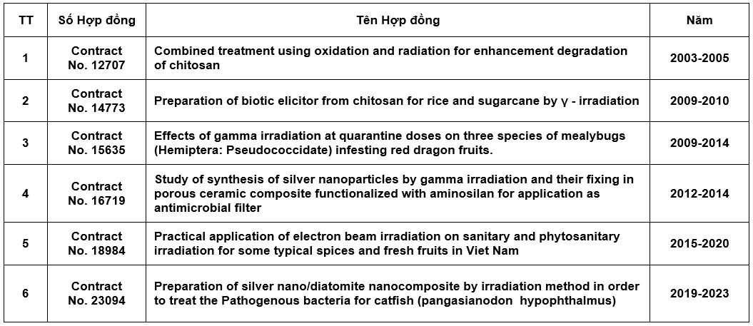Bảng 7. Tổng hợp Hợp đồng NCKH với Cơ quan Năng lượng Nguyên từ Quốc tế - IAEA